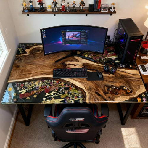 Table rivière sur mesure en résine époxy et noyer, Black Pearl NXT-724 -